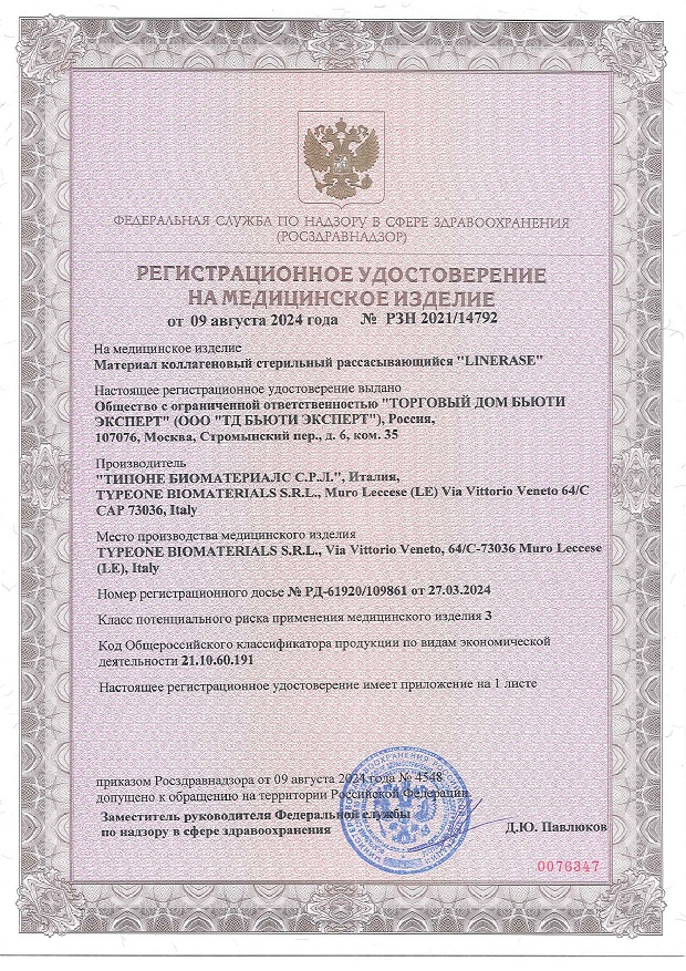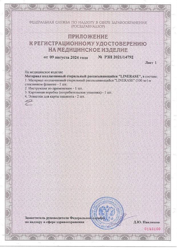 Регистрационное удостоверение № РЗН 2021/14792 от 09 августа 2024