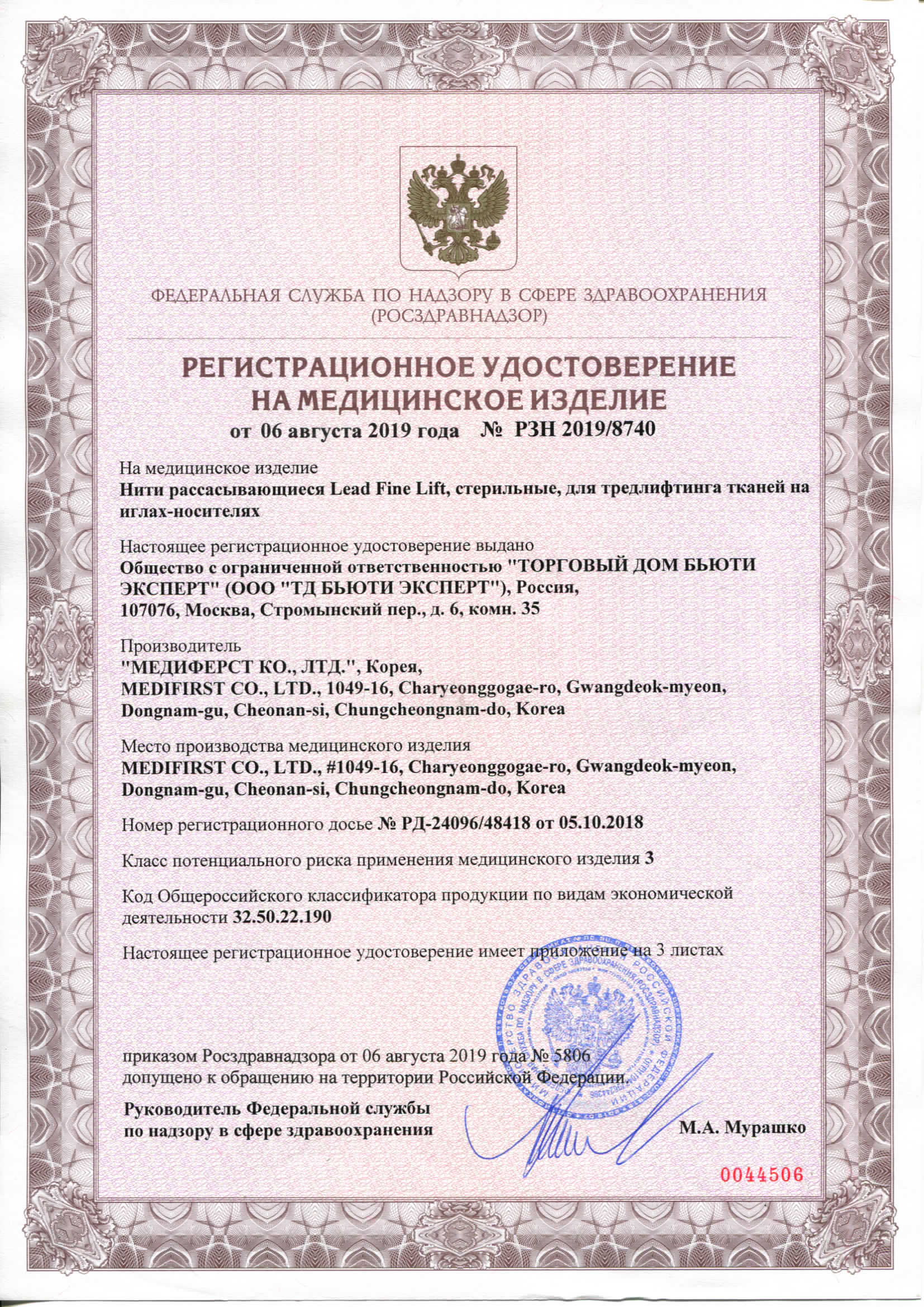 Мезонити Lead Fine Lift - единственные зарегистрированные нити для тредлифтинга тканей лица и тела премиум-класса.